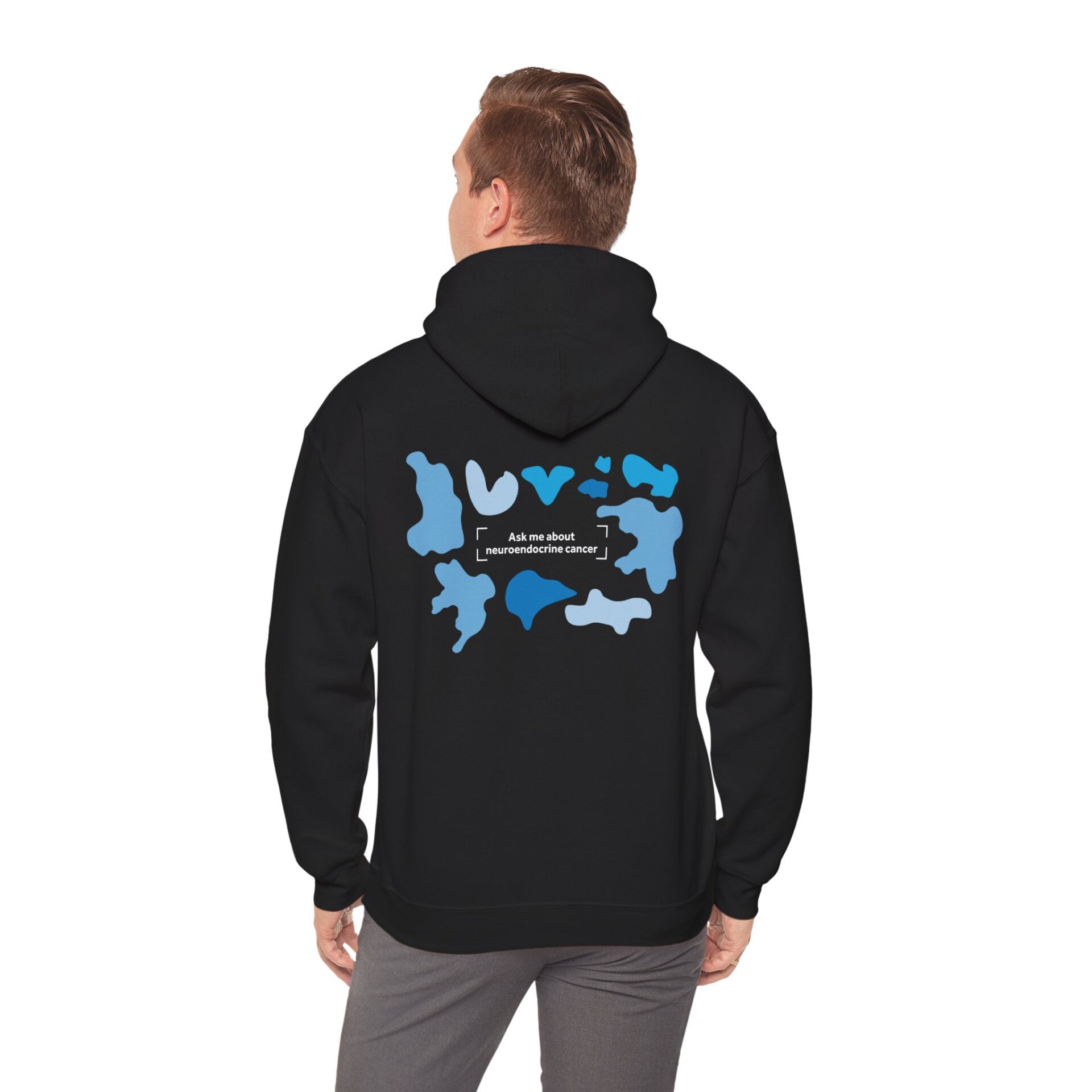 The Camo Awareness Hoody combines comfort with purpose. Its soft, warm fabric and striking camouflage print make it a perfect everyday layer, while the bold statement “Ask Me About Neuroendocrine Cancer” invites conversations that can help shine a light on this often-overlooked cancer.
