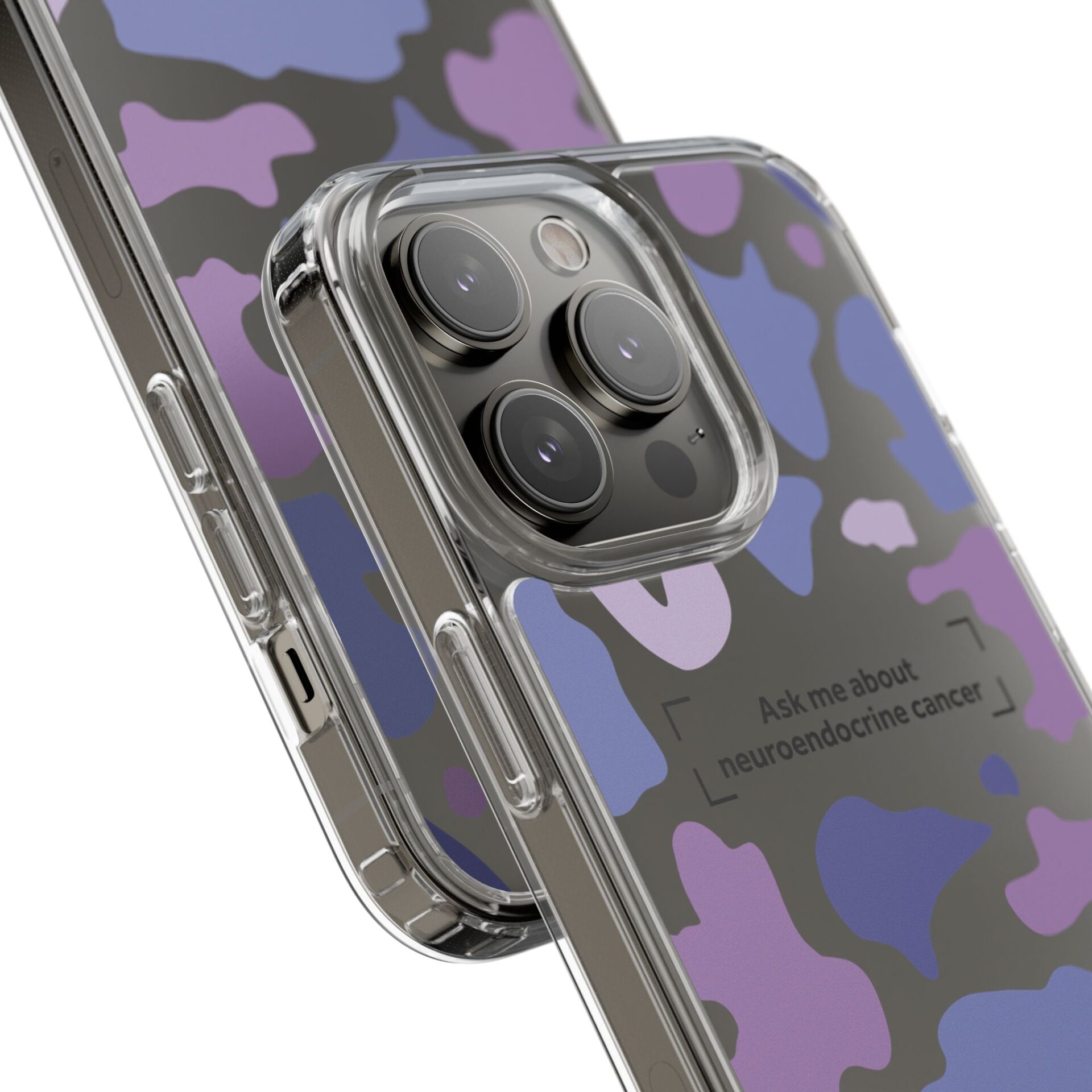 Our Camo Awareness Phone Case is more than just protection for your device — it’s a powerful conversation starter. With its camouflage design, it symbolises how neuroendocrine cancer often hides in plain sight. The bold text “Ask Me About Neuroendocrine Cancer” encourages awareness, dialogue, and advocacy wherever you take your phone.