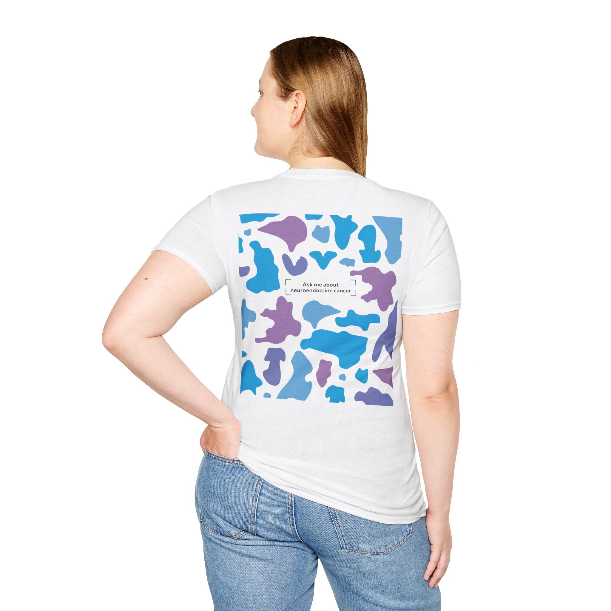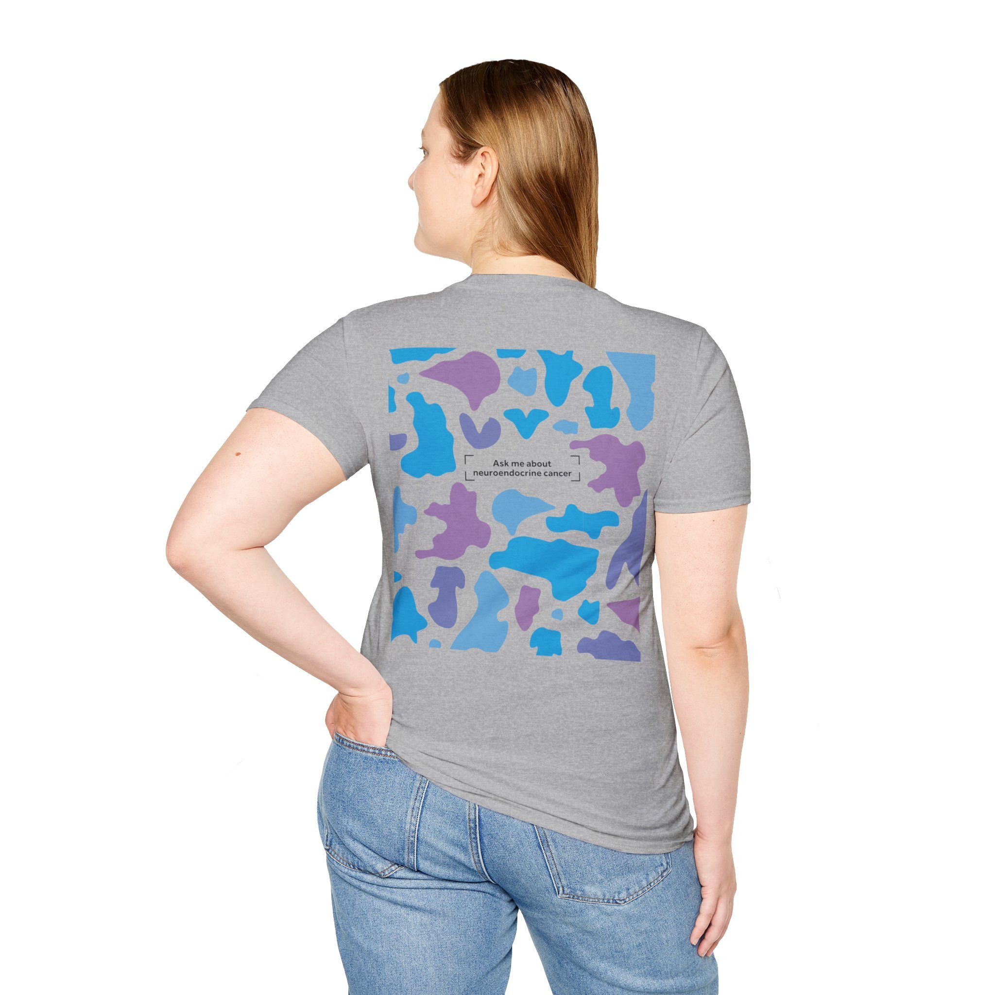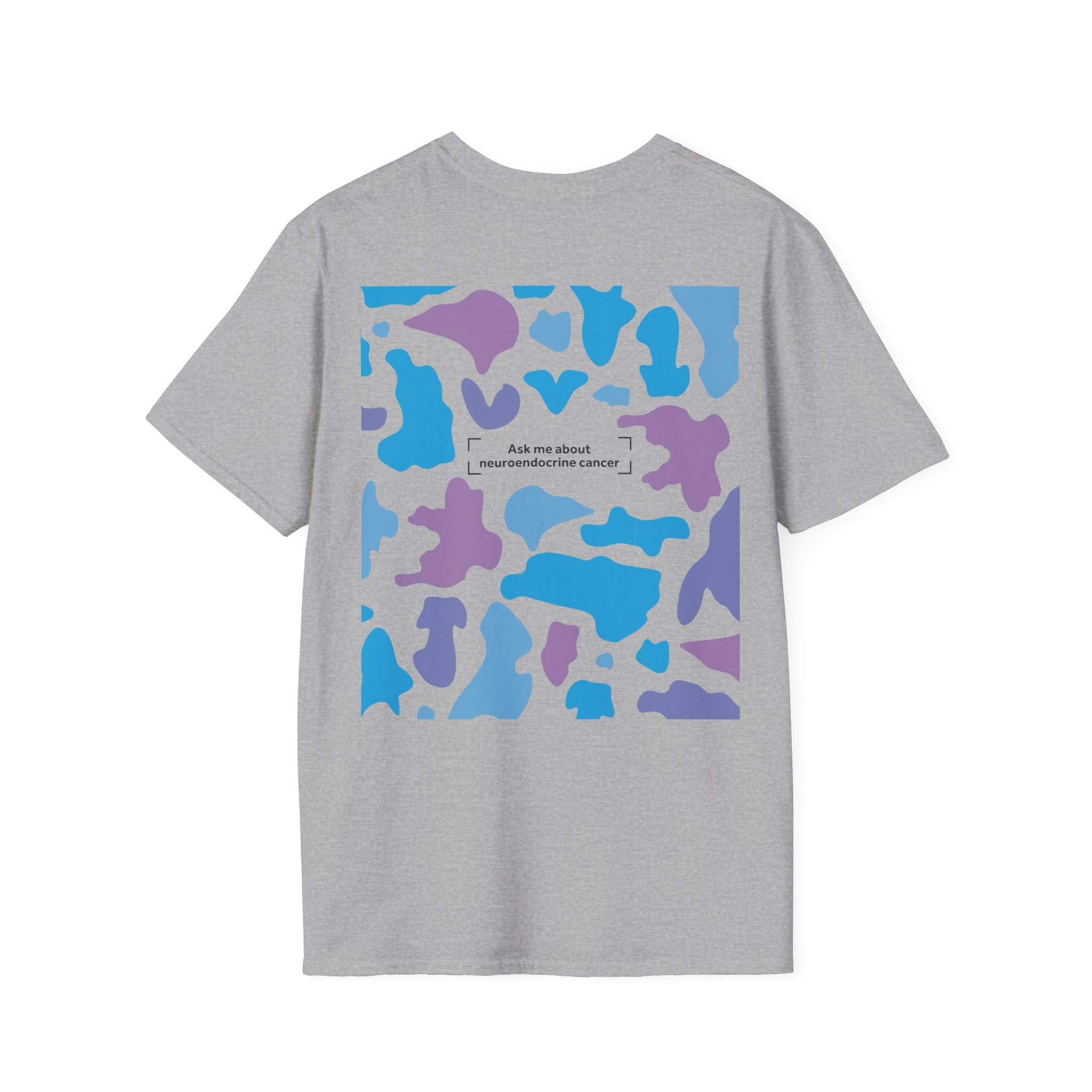 Blending bold design with purpose, our Camo Awareness Tee is part of NECA’s camouflage campaign, symbolising how neuroendocrine cancer often hides in plain sight. The striking camouflage print is paired with the statement “Ask Me About Neuroendocrine Cancer” — inviting conversations that can drive earlier diagnoses and better outcomes for patients.
