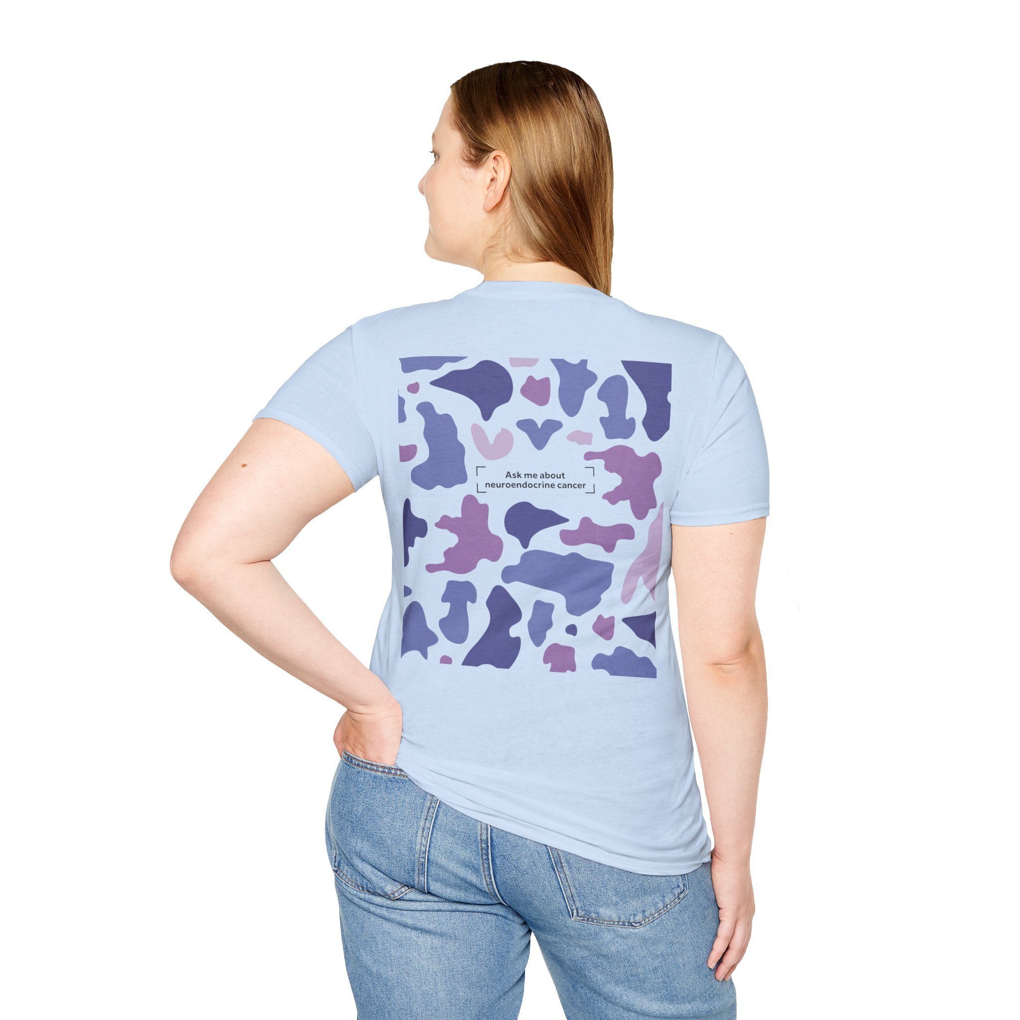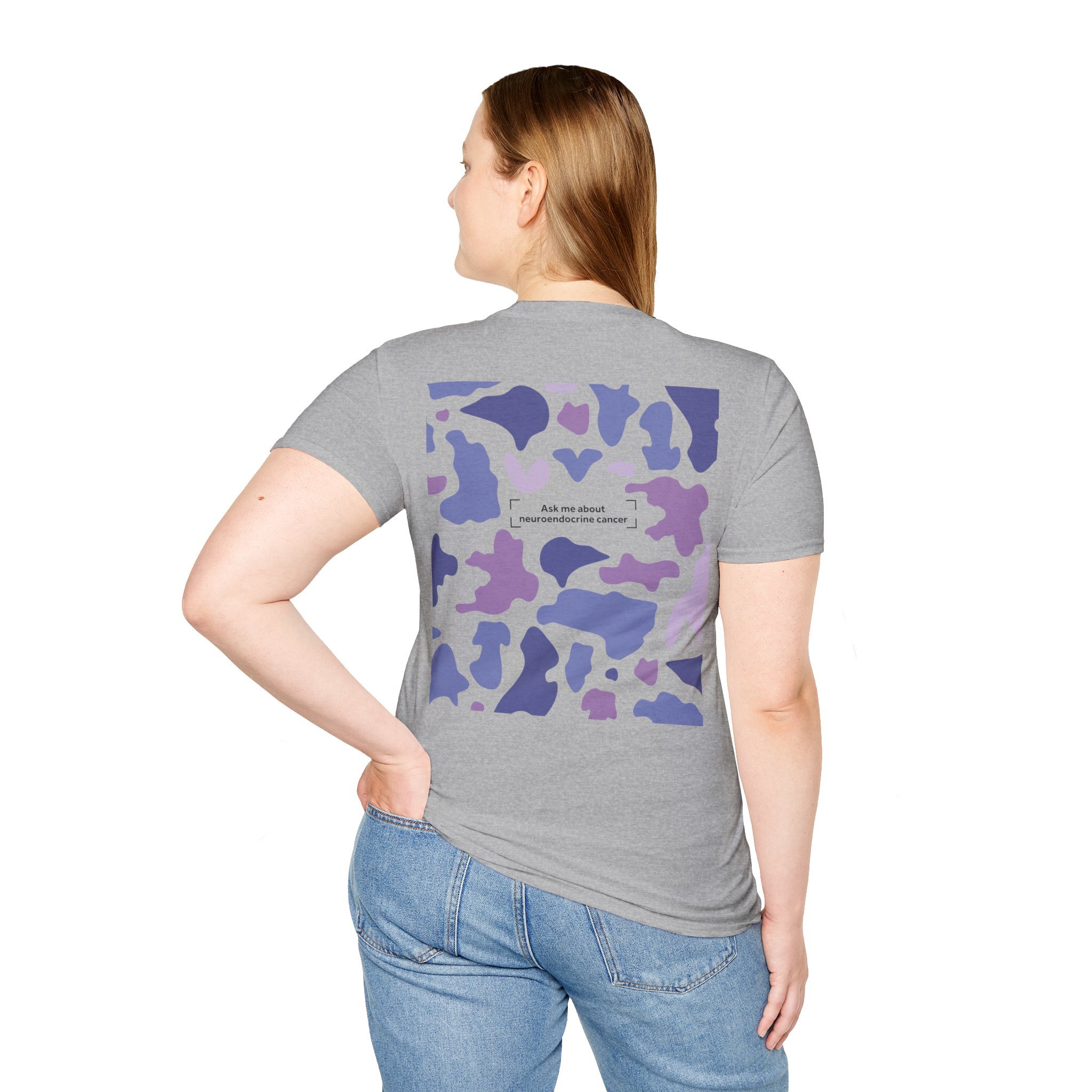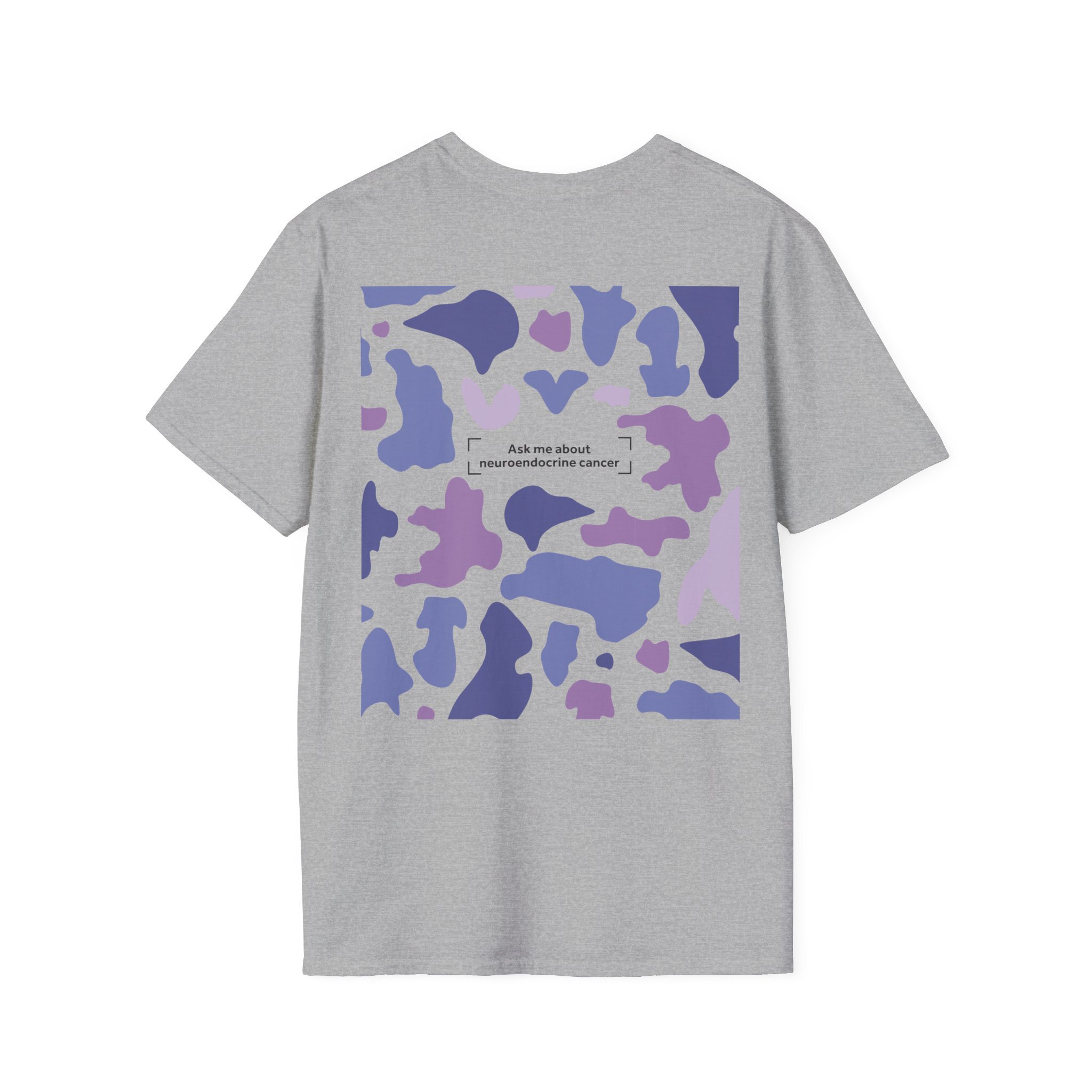 Blending bold design with purpose, our Camo Awareness Tee is part of NECA’s camouflage campaign, symbolising how neuroendocrine cancer often hides in plain sight. The striking camouflage print is paired with the statement “Ask Me About Neuroendocrine Cancer” — inviting conversations that can drive earlier diagnoses and better outcomes for patients.